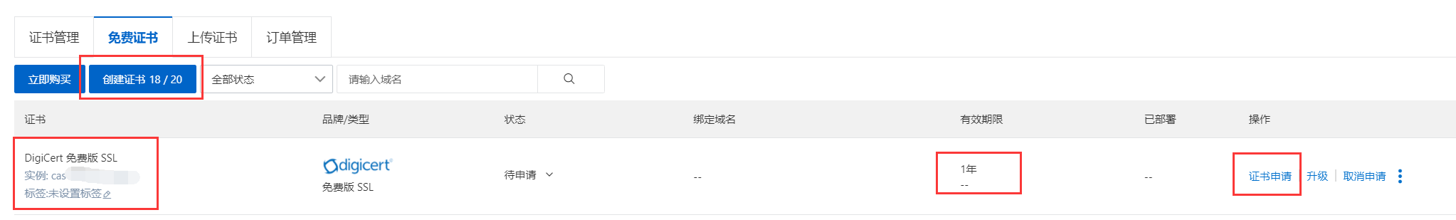 2.接着我们创建一个证书,并点击申请。
