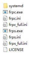 文件都比较直接简洁,frpc是客户端,frps是服务端,ini则为配置