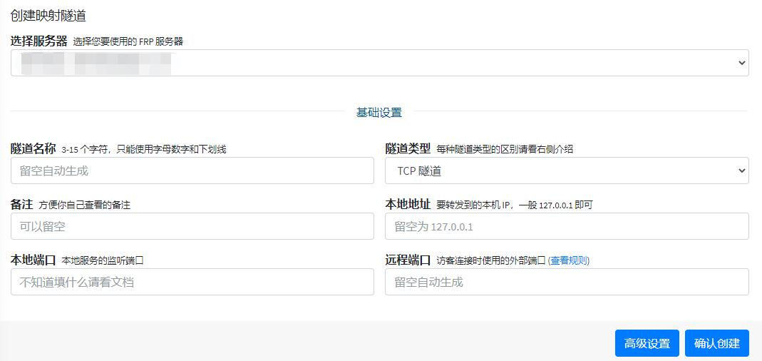 接下来配置服务器内容,在左侧创建一个隧道,要填什么,基本都有说明.