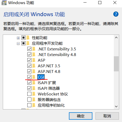这里就不详细说明安装过程了。需要注意的是,IIS的话需要安装CGI,安装时需要留意一下