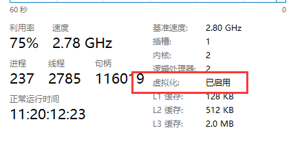 在装时,WSL2使用Hyper-v虚拟化技术,所以需要我们在Bios里面开启虚拟化,并在任务管理器中保证虚拟化已经开启
